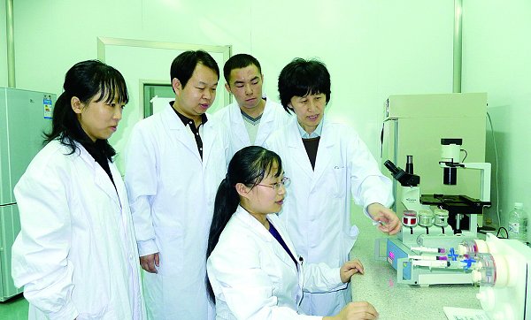 目前研究空间环境对空间飞行航天员健康影响的结果表明,空间飞行过程中心肌细胞功能紊乱的风险性极高。课题组通过建立与在体心肌组织生物学性能和生理状态近似的,适用于空间生命科学和空间环境评价的三维细胞培养体系,对模拟辐射及复合模拟微重力效应开展相关研究,探讨了细胞结构改变以及细胞生化代谢变化的分子机制。研究发现,心肌细胞在对模拟空间环境条件的响应性变化中较早出现氧化应激性改变,细胞的氧化应激性响应可能是细胞失重与辐射损伤的细胞学基础。此外,在模拟辐照复合微重力效应下,细胞损伤修复分子表达、细胞染色体结构以及有丝分裂指数等都发生了改变。课题组建立了敏感的空间环境快速响应生物剂量分子检测技术,为开展深空飞行中航天员的健康和医学保障提供有效的生存安全数据,并且进一步探讨和评价了抗氧化剂等药物对模拟辐照和模拟失重环境下的心肌细胞的防护作用,为航天员健康防护提供针对性的防护药物奠定了基础。 (通讯员 韩放)上图为李钰教授(后右一)与课题组成员在一起 (冯健摄)