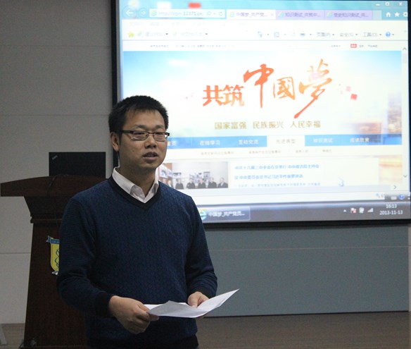 为深入开展“中国梦”和党的群众路线教育实践活动,根据校党委要求,生命学院党委于11月13日下午组织学院教工党支部借助“共筑中国梦”专题网页集体学习和在线答题活动。生命学院党委书记李钰、副书记喻庆勇和全体在校教工党员参加活动,活动由党委秘书邢世杰主持。