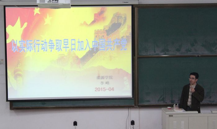 2015年4月21日晚18:30,哈尔滨工业大学生命―理学―化工学院党校分校积极分子培训班第五讲在正心11顺利举行。能源学院研究生协理员李峰老师为学员们带来了题为:“以实际行动争取早日加入中国共产党”的精彩讲座。