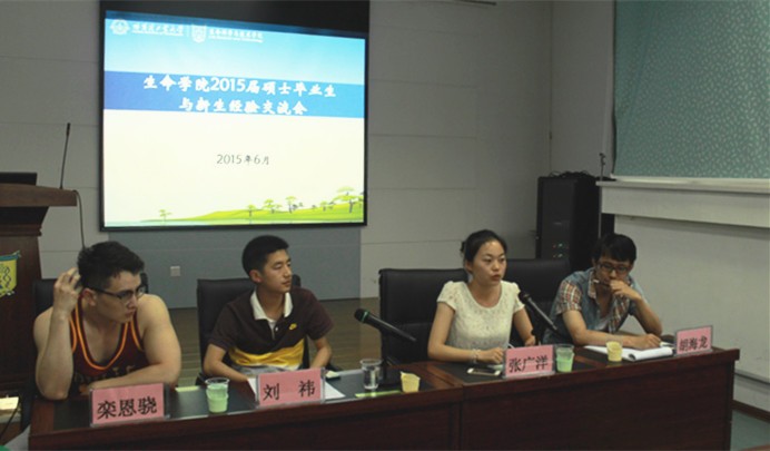 6月18日,带着即将离开母校的依依惜别之情,15届硕士毕业生代表刘�、胡海龙、张广洋、栾恩骁四位同学,同即将升入二年级的硕士学弟学妹们进行了一场真诚的交流。四名同学分别从拓展学术视野、增强专业和科研能力,以博士生生涯追求更高的科研理想;科学打理硕士阶段的生活和学习,丰富阅历、增长才干、提升自身求职能力与核心竞争力,争取签约更优秀的职位;开拓国际视野,领略学科国际前沿进展,以公派留学方式增强自身才干为学科做出更大国际贡献等方面进行了交流和分享。硕士一年级同学们就相关问题向几位优秀毕业生学长学姐进行了交流,交流会持续80余分钟。