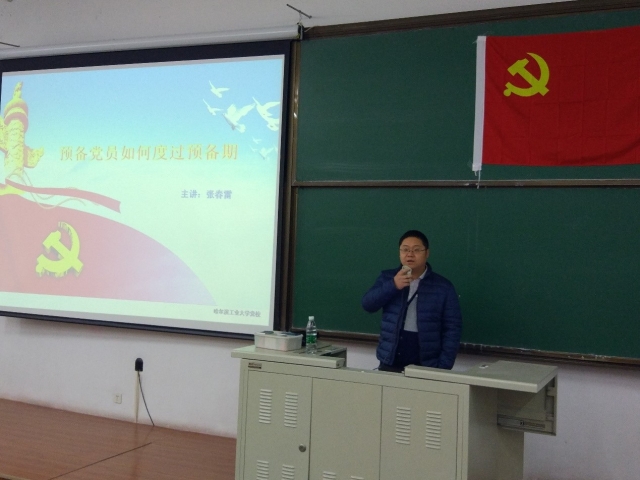 2016年11月1日晚,哈工大党校生命-理学-化工与化学学院分校预备党员培训班第三讲在正心楼11教室顺利举行。电信学院张春雷老师为大家带来了题为“预备党员如何度过预备期”的精彩课程。