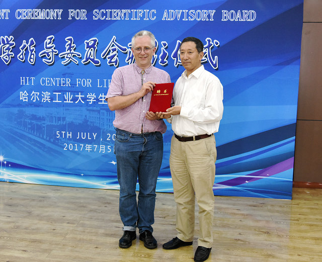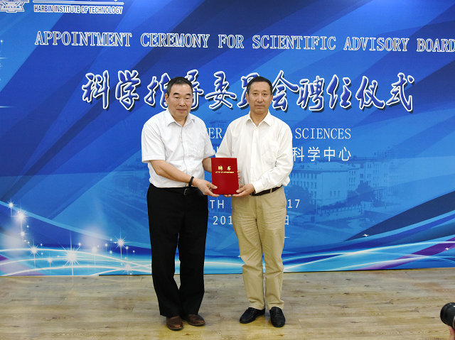 哈工大报讯(闫明星 文/图)7月5日,哈工大生命科学前沿研究论坛暨哈工大生命科学中心科学指导委员会委员受聘仪式在校召开,8位来自中国、美国、英国、荷兰等国家的院士科学家正式受聘。校长周玉为8位受聘委员一一颁发了聘书。
