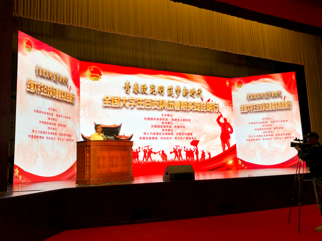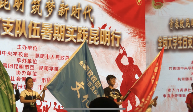 8月7日上午,由昆明市人民政府联合团中央学校部共同主办的“青春致昆明筑梦新时代”全国大学生百支队伍暑期实践昆明行活动在昆明会堂隆重开幕。来自全国各地高校的百支暑期实践队伍齐聚昆明,为昆明发展献才献智。