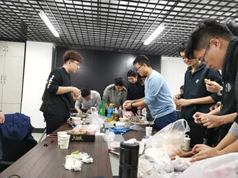 团支委事先采购好制作食材和用具,团支部成员热情高涨,分别找到自己的拿手项目:搓面球、擀面皮、包饺子。除了传统白菜猪肉馅饺子,大家还推陈出新,制作了五彩饺子、芥末饺子、老干妈饺子等,为整个包饺子活动增添了许多乐趣。