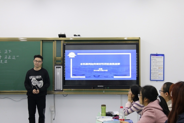 任宽从自己本科以来的学习与科研经历,以自己的所参与的课题方向为例,为大一新生简要介绍了参加科学研究的步骤与方法,对同学们提出的有关大一年度项目问题进行了解答,对同学们参与大一年度科学研究项目表达了鼓励与期待。任宽以多年的科研经历和在座的同学们分享,树立理想,执着前行,不怕苦,不怕累的科研精神激励着在场的每一位刚刚开始大学生涯的新生,在本科生阶段便发表nature论文的经历更是激发同学们对科研项目的兴趣与热情。