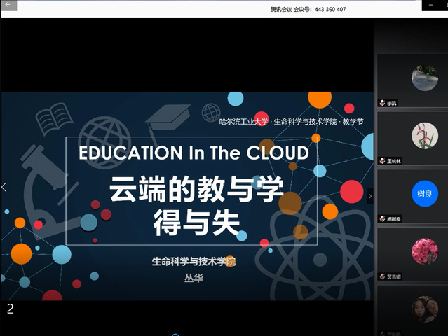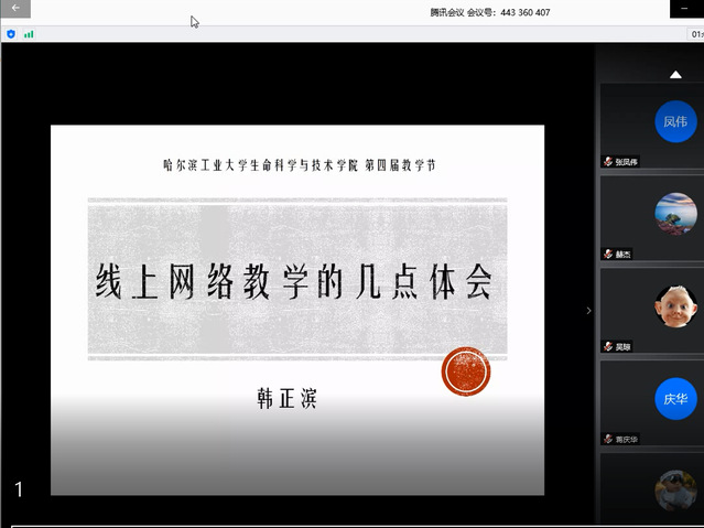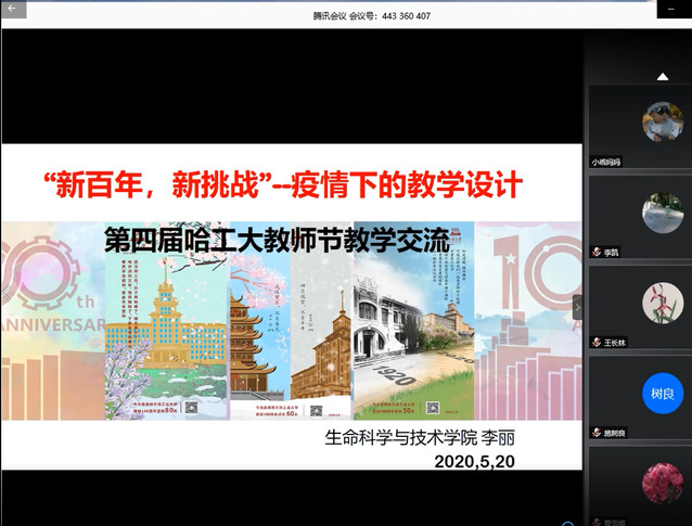 为纪念哈工大建校一百周年,弘扬哈工大“规格严格,功夫到家”的优良传统,结合疫情防控期间学院在线教学取得的成效,学院于2020年5月20日下午14:00通过腾讯会议在线召开了第四届教学节活动——“云端战疫”挑战与发展报告交流会。生命学院院长黄志伟教授、教学副院长聂桓教授、学院大类教学委员会及全体教师参加了会议,本科生院教学研究与质量管理处副处长王广智作为特邀嘉宾出席了会议。