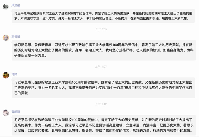 2020年6月8日上午,生命学院生物工程系1628201团支部集体学习了习近平总书记致哈尔滨工业大学建校一百周年的贺信。同学们积极讨论,反响热烈,对习近平总书记的关心和鼓励感到责任重大,为母校感到骄傲自豪,纷纷表示要为哈工大建设成中国特色世界一流哈工大规格的百年强校贡献青春才智,让青春在党和人民最需要的地方绽放绚丽之花!