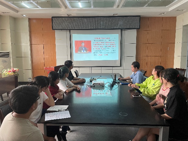 活动开始前,《话说党史》和《我和我的祖国》循环播放,让各位党员感受历史画卷中的浩然正气,缅怀英雄人物。支部书记田维明以《深入学习贯彻习近平总书记重要论述——学好中国共产党历史》为主题,回眸往昔,分享了自己的所学所思所感,生动形象的讲述了中国共产党从“开天辟地”、“改天换地”、“翻天覆地”到“惊天动地”的百年历程和中国共产党为实现国家独立和民族解放所进行的一系列艰苦卓绝的斗争。