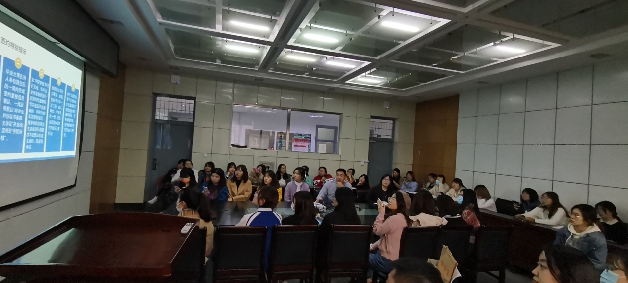 为做好学院2022届研究生毕业生就业工作,在2021年夏季学期期末,学院就着手进行就业动员工作,辅导员张子麒为大家汇总了截至目前所有关于本专业相关的工作,成立专门的就业信息分享群,叮嘱同学们及时关注哈工大就业、HIT基层组织研究会等就业相关微信公众号。在本次年级大会上,首先向大家介绍了关于就业管理工作时间、毕业生就业推荐表、有效签约材料等相关事宜,向同学们介绍了近三年学院毕业生的就业情况,分析了近年来学院硕士毕业生就业面临的形势,接着着重介绍了近年来学院毕业生基层选调就业情况,帮助大家进一步坚定了积极就业的信心和决心。