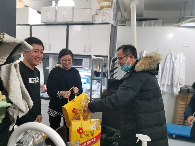 紫气东来,巍巍华夏江山永固,红旗招展,虎添双翼前程远大。面对新冠疫情在全国多地仍然反复的严峻形势,同时为完成科研任务和抓紧学业进度,学院60余位同学选择留校过年。为了让同学们就地过年也能体会到家的温暖与浓浓年味,学院为每位留校同学送来了丰富的新年礼包,并与同学们亲切地交流。老师们详细询问了大家的生活学习情况,嘱咐留校同学多和家人和好友联系,及时表达自己的情意,即便是隔空陪伴,也会是彼此珍贵温暖的回忆;老师们还叮嘱同学们科研要有效率,要多锻炼身体,这才是可持续的进步方式;老师们还嘱托同学们疫情防控不能掉以轻心,要戴口罩,勤洗手,测体温,勤消毒,少聚集,勤通风,学院会做好保障工作,同学们如有任何问题第一时间随时联系。最后,春节慰问组祝愿同学们科研顺利,生活愉快,一起把这个特殊年过得健康、喜乐、充实,而又有意义。