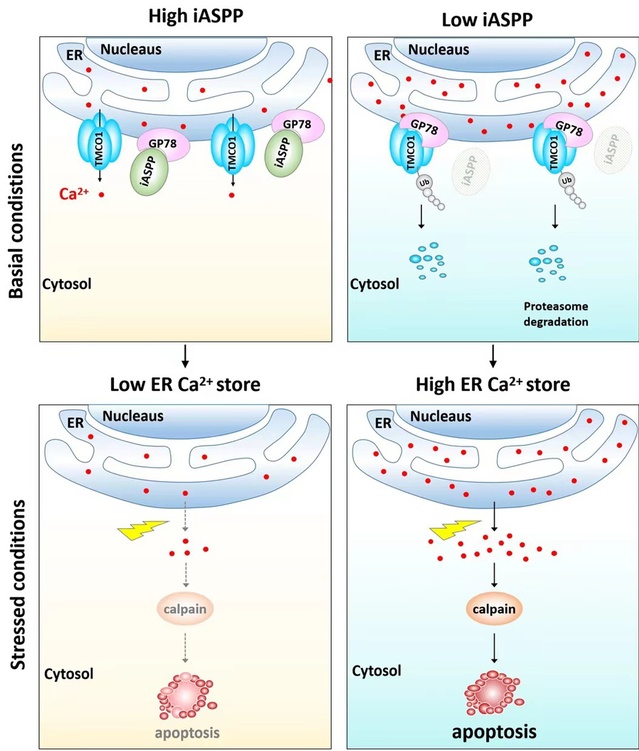 近日,胡颖教授研究团队在肿瘤细胞内质网钙稳态调控机制方面取得重要进展。相关内容以研究论文的形式发表于《美国国家科学院院刊》(PNAS),论文题目为《iASPP通过抑制Gp78介导的TMCO1降解维持Ca2+稳态促进肿瘤生长和耐药》(iASPP suppresses Gp78-mediated TMCO1 degradation to maintain Ca2+ homeostasis and control tumor growth and drug resistance)。