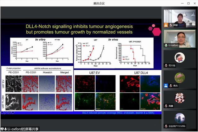 Ji-Liang Li教授首先对Notch信号通路和肿瘤血管生成中的DLL4进行了简单介绍,随后对DLL4在抗VEGF治疗的作用,JAG1与血管生成和抗VEGF治疗的关系,以及靶向DLL4和JAG1蛋白的临床治疗做了详细介绍,另外还介绍了Notch信号通路与肿瘤血管生成和肿瘤治疗抗性相关工作。讨论环节,胡颖老师等多名师生就DLL4-Notch singnalling促瘤效应与免疫细胞之间相互作用等相关问题进行了充分深入交流,Ji-Liang Li教授耐心并热情地解答了师生们的疑惑。会下各位师生表示本次学术活动的举办非常有意义,并对李老师的精彩报告表示感谢。