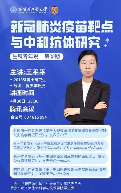 为聚焦生命学科前沿,在生命学院团委的支持下,生科青年说第五期将邀请哈工大生命学院从事新冠肺炎免疫响应机制相关研究的博士生王平平,为大家介绍新冠肺炎疫苗靶点与中和抗体的相关研究进展。