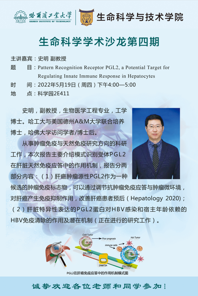 讲座题目:Pattern Recognition Receptor PGL2, a Potential Target for Regulating Innate Immune Response in Hepatocytes