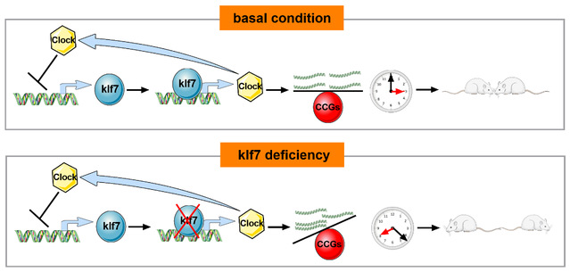 Klf7调控生物钟基因clock示意图