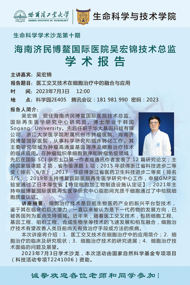 报告题目:医工交叉技术在细胞治疗中的融合与应用