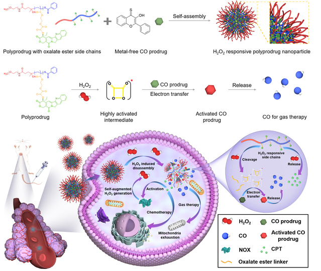 H2O2响应性聚合前药纳米载体用于化学能激活的自我增强抗肿瘤化疗/气体联合疗法