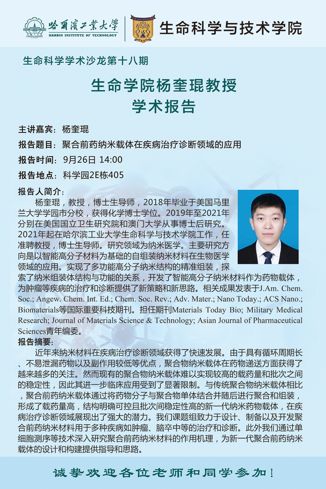 【生命科学学术沙龙第十八期】生命学院杨奎琨教授学术报告通知