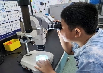 在发育生物学实验室,志愿者结合科普海报与显微观察,系统讲解了小鼠作为模式生物的核心优势。学生们通过显微镜观察小鼠胚胎切片,直观了解器官发生等关键发育阶段,深化了对生命发育的认知。