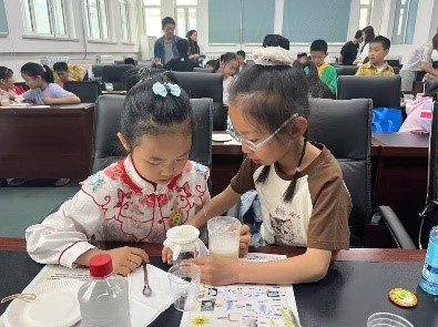 糖脂代谢实验室博士生团队以“健康中国 从小开始,糖脂平衡 由我守护”为主题为中小学生打造沉浸式科普体验。实验室成员以生动形象的比喻,向小朋友们揭示了快餐盒中“隐形刺客”——微塑料的危害,让抽象的科学概念变得直观可感。在“小小营养师”实践环节,孩子们用食物贴纸创作三餐食谱,活动现场互动热烈,孩子们直呼“要当家庭健康监督员”。在“香蕉DNA提取”实验环节,学生在专业人员指导下,将果肉泥与裂解液混合破坏细胞结构,经过滤后加入低温酒精,成功析出絮状DNA沉淀。这一直观的分子生物学实践,激发了孩子们对生命本质的探索热情。
