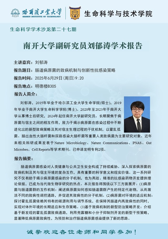 【生命科学学术沙龙第二十七期】南开大学副研究员刘郁涛学术报告