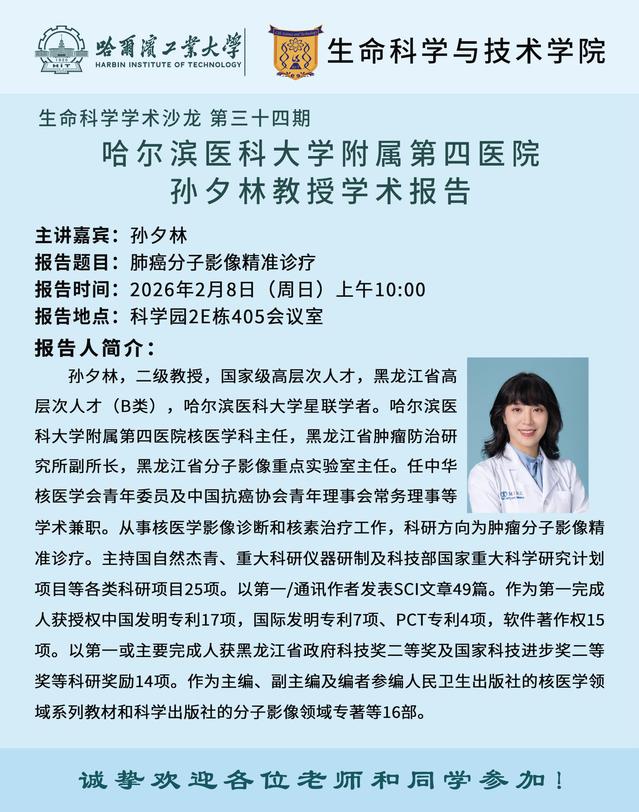 【生命科学学术沙龙第三十四期】哈尔滨医科大学附属第四医院孙夕林教授学术报告